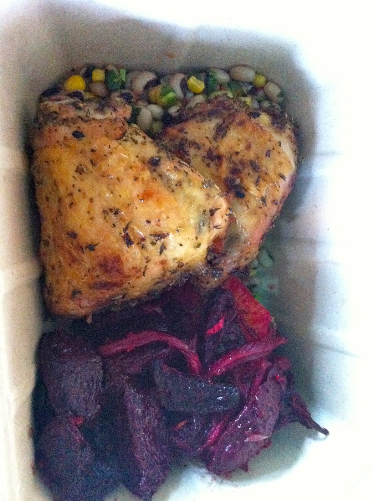 Special Agent Dad had chicken with beet salad and some other goodies from the hot bar.