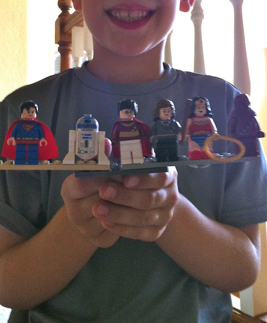We didn't really have any superhero themed shirts or costumes so Secret Agent Man and I thought these Lego Hero's with a nice note would be a lovely substitute!