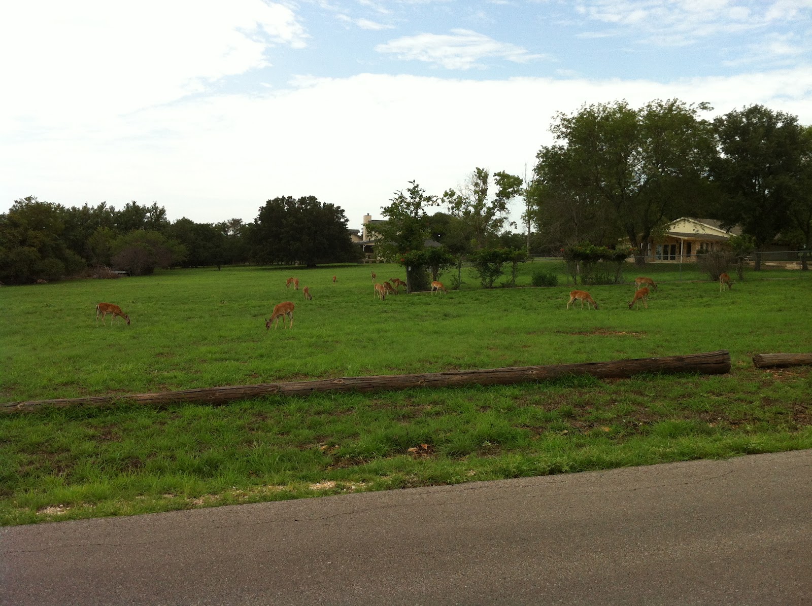 On our way home we pass through a neighborhood where the houses have a lot of land. We see many deer travelling through here.