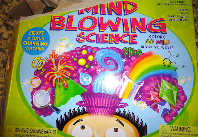 So, Secret Agent Man and I have been finding fun stuff to do indoors. We brought out this Science kit that he got as a gift. We finished about half of the experiments before the move and decided to do a few more.