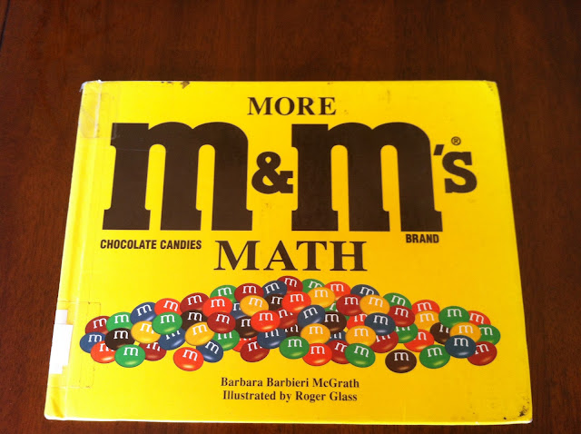 So anyway, one of our first books to check out was M&M math. It is the second version. I think the math is a bit harder in this one.